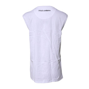 Dolce & Gabbana White Cotton Sleeveless Printed Tank T-shirt