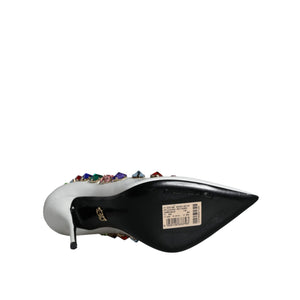 Dolce & Gabbana White Crystals Leather High Heels Pumps Shoes