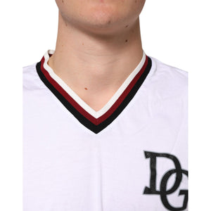 Gorgeous brand new, 100% Authentic Dolce & Gabbana V-neck T-shirt in classic optical white. Crafted from 100% premium cotton, this piece features the standout #DGMillennials King Crown logo embroidered at the front, a nod to bold elegance and youthful spirit.