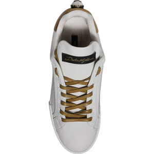 Dolce & Gabbana White Gold Leather Low Top Sneakers Shoes