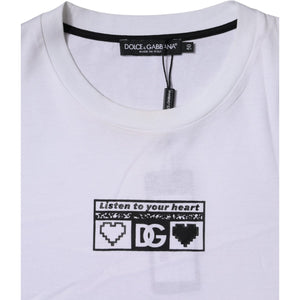 Dolce & Gabbana White Logo Print Cotton Crew Neck T-shirt