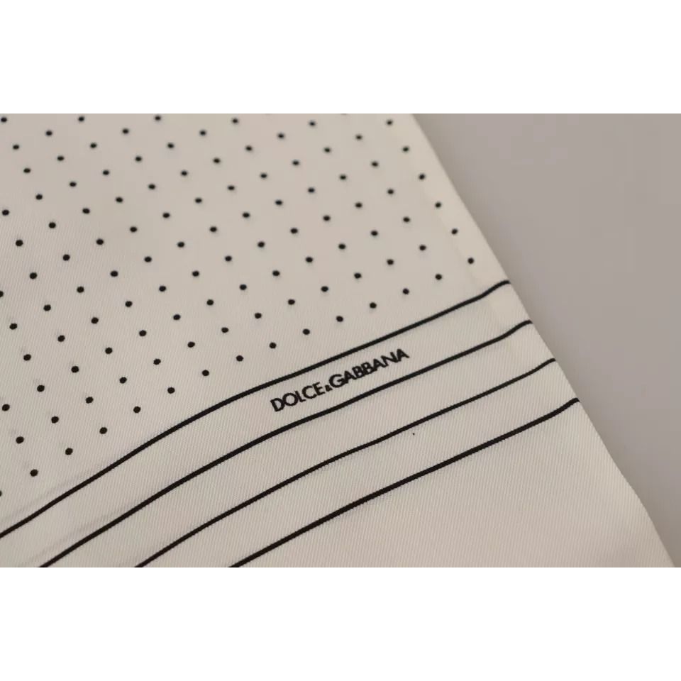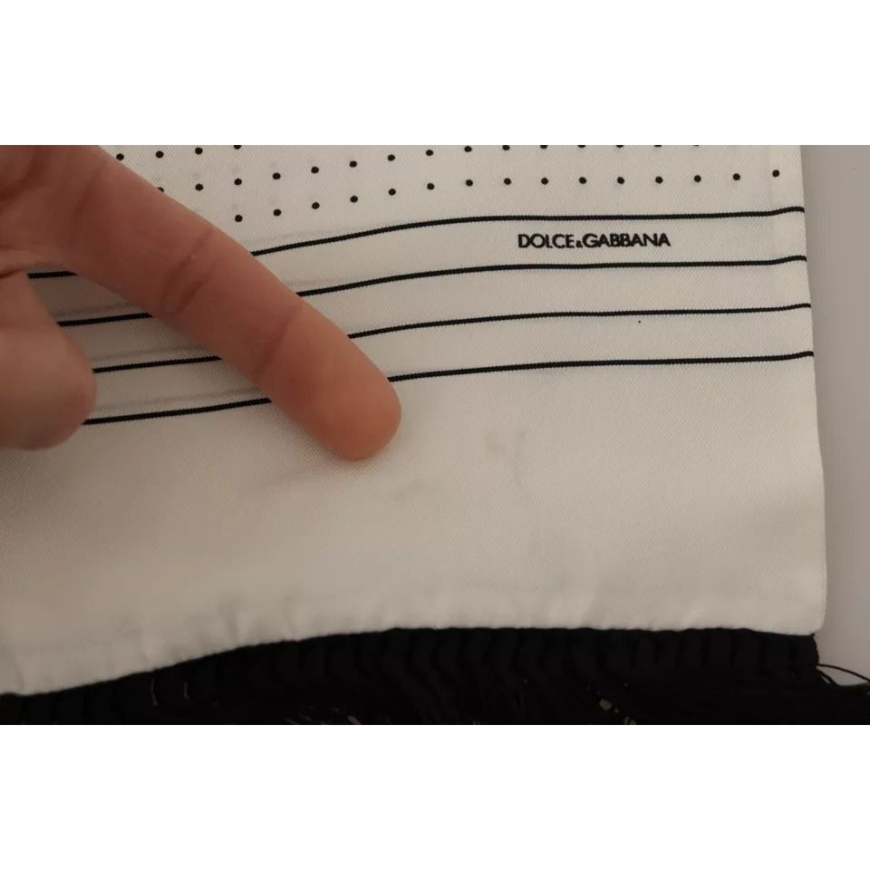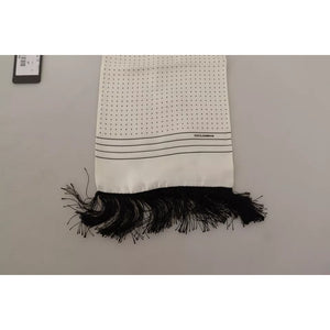 Dolce & Gabbana White Polka Dots Pattern Silk Fringes Wrap Scarf