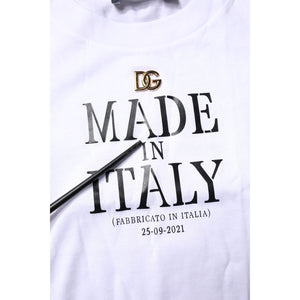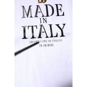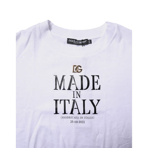 Dolce & Gabbana White Printed Round Neck Top Cotton T-shirt