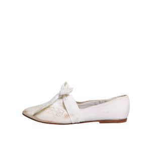 Dolce & Gabbana White Ribbon Fabric Ballerina Flats Shoes