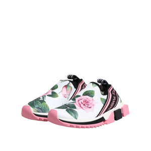 Dolce & Gabbana White Rose Print Sorrento Sneakers Shoes