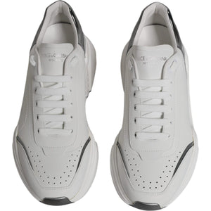 Dolce & Gabbana White Silver DAYMASTER Leather Sneakers Shoes