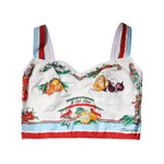 Dolce & Gabbana White Vegetable Print Sweetheart Cropped Top