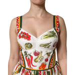 Dolce & Gabbana White Vegetables Sleeveless A-line Dress