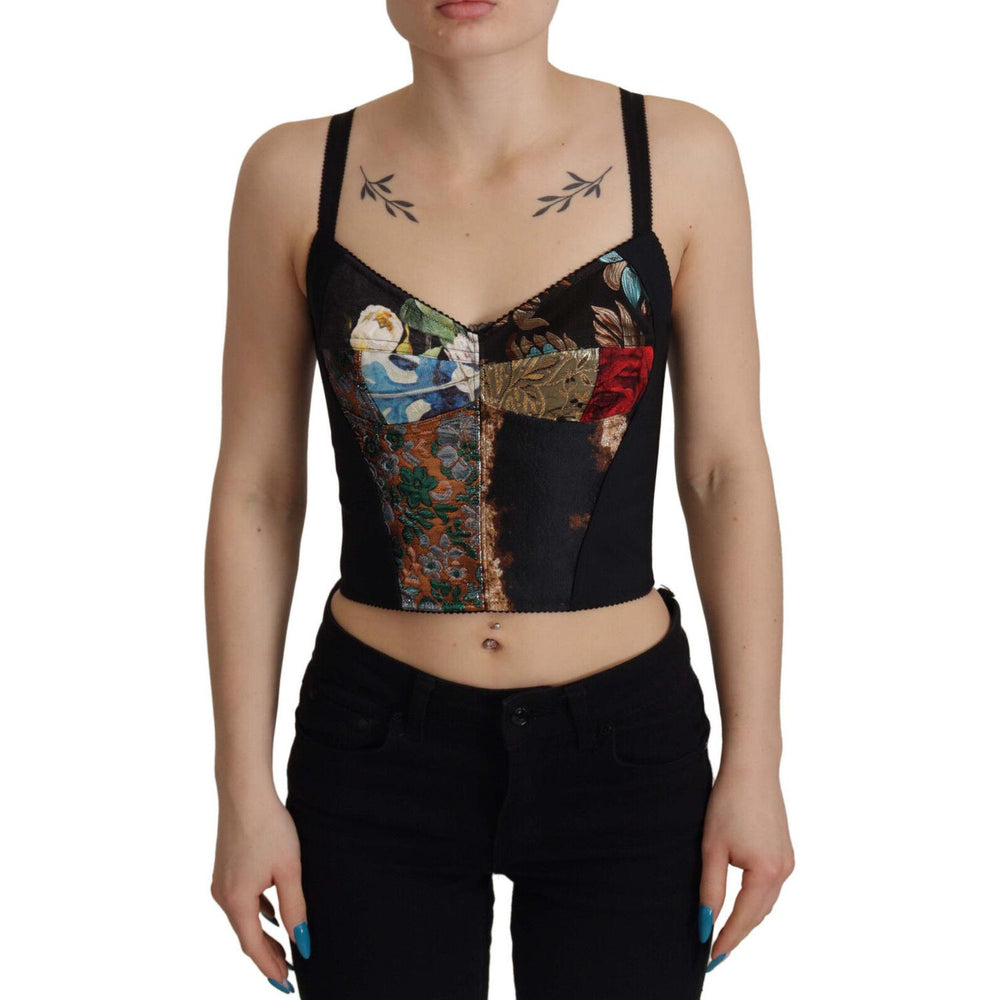 Dolce & Gabbana Black Patchwork Sicily Blouse Corset Cropped Top