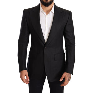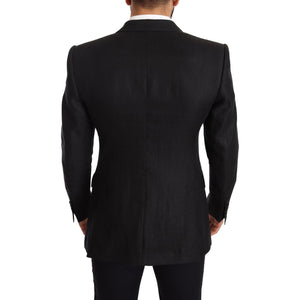 Dolce & Gabbana Black Linen Slim Fit Coat Jacket Blazer