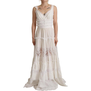 Dolce & Gabbana White Cotton Tiered Long Maxi A-line Dress