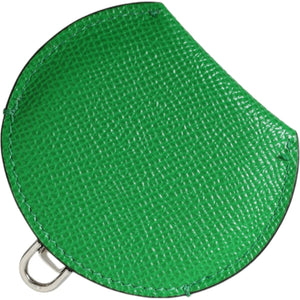 Dolce & Gabbana Green Calfskin Leather Round Logo Hand Mirror Holder