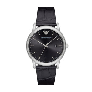 EMPORIO ARMANI Mod. AR2500 luxury men's watch with black leather strap and elegant silver case, featuring a minimalist design.