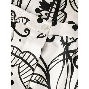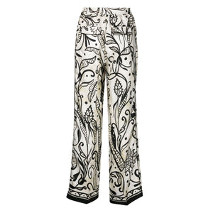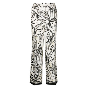 palazzo silk pyjama trousers from F.R.S For Restless Sleepers featuring white/black, silk, all-over floral print, elasticated waistband, button fastening and palazzo design. Printed silk trousers Size and Fit - This piece fits true to size. We recommend you get your regular size. Model is 1,75m / 5ft 8in wearing size S