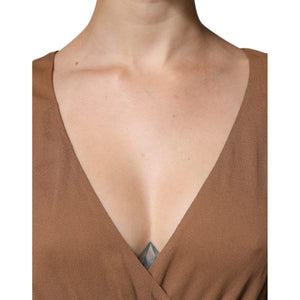 Fabiana Filippi Brown Sleeveless Deep V-neck A-line Long Maxi Dress