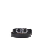 Ferragamo’s Gancini reversible Belt is a versatile and sophisticated accessory. Its topstitched shaft gives it a casual allure, while the reversible two-tone construction ensures a perfect fit for a variety of looks. The distinctive Gancini buckle in ruthenium finish is elegantly decorated with a contrasting palladium-colored border, adding a touch of sophistication. This model is also adjustable in length, allowing for a completely customized fit and style.