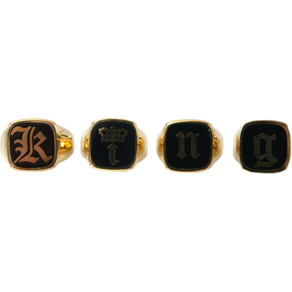 Dolce & Gabbana Gold Brass KING Enamel Set of 4 Ring