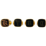 Gorgeous brand new with tags 100% Authentic Dolce & Gabbana set of four signet rings in gold-tone brass. Black enamel finish and mismatched lettering at faces.