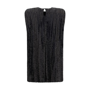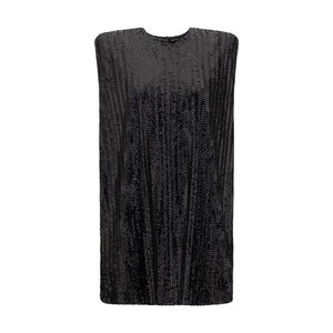 The Sequined Mini Dress by Golden Goose is a bold and sparkling piece perfect for special occasions. The sleeveless design and classic crew neck offer an elegant, understated cut, while the padded shoulders add structure and a tailored touch. The back button closure completes the design, keeping the silhouette clean and refined. The sequin design gives the dress a bright, modern effect, making it ideal for those seeking a glamorous look with a contemporary twist.