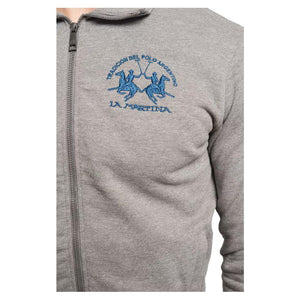 La Martina full zip sweatshirt in melange grey cotton, logo embroidered on the chest and shoulder, side pockets