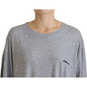 Dsquared² Gray Crystal Embellished Cotton Long Sleeves Dress