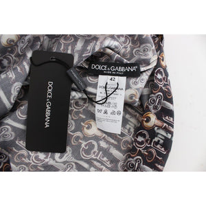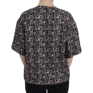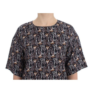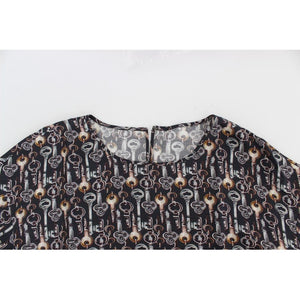 Dolce & Gabbana Gray Gold Key Print Silk Blouse T-shirt