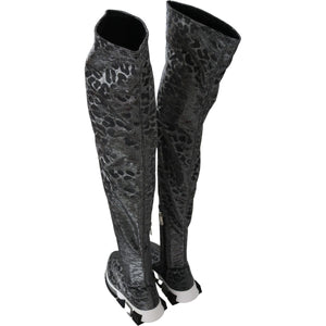 Dolce & Gabbana Gray Leopard High Top Sneakers Booties Shoes