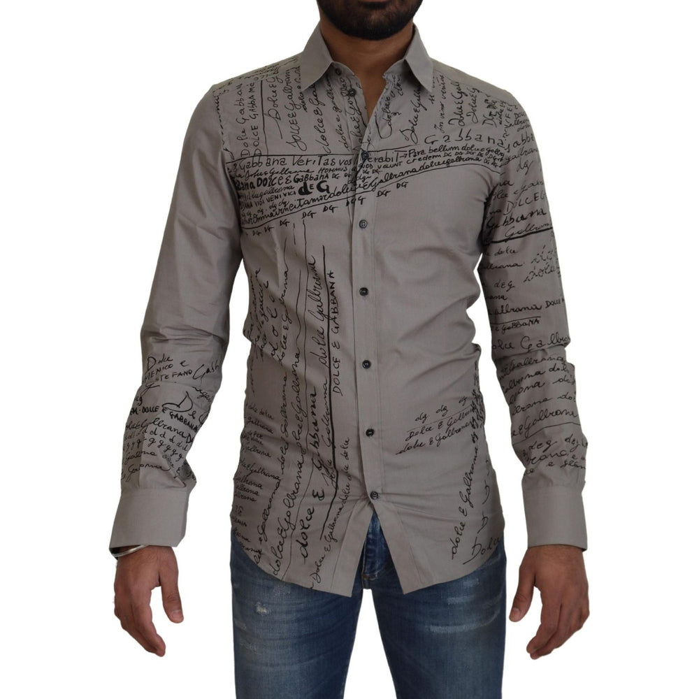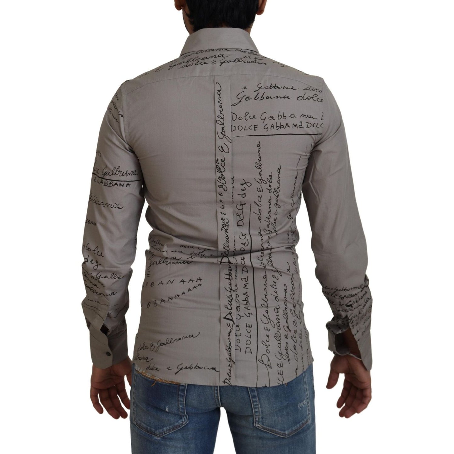 Dolce & Gabbana Gray Printed Cotton Slim Dress GOLD Shirt