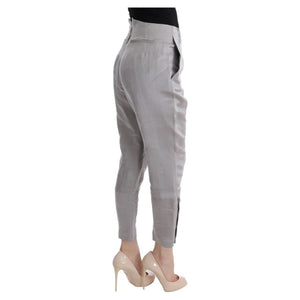 Ermanno Scervino Gray Silk Cropped Casual Pants