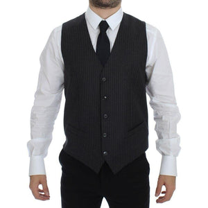 • Dolce & Gabbana Gray Striped Wool Single Breasted Vest GSS12009-1