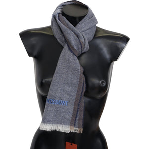 Missoni Gray Striped Wool Unisex Neck Wrap Fringes Scarf