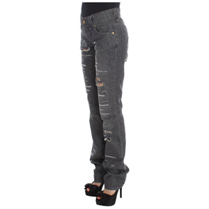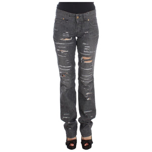 John Galliano Gray Wash Cotton Torn Straight Fit Jeans