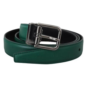 Dolce & Gabbana Green Calf Leather Silver Tone Metal Buckle Belt
