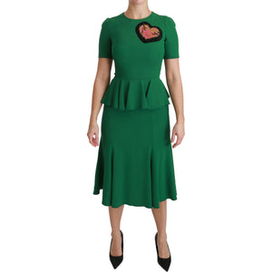 Dolce & Gabbana Green Heart Patch Mermaid Midi Viscose Dress