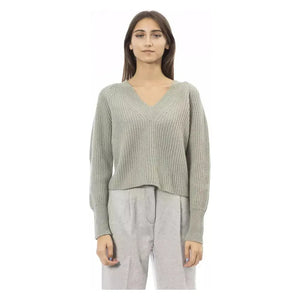 Indulge in the epitome of timeless elegance with Alpha Studio’s beautifully crafted V-neck sweater. A flawless blend of luxurious wool and sumptuous cashmere cradles your skin in warmth, while the finely ribbed collar, cuffs, and hem offer a touch of sophistication to your ensemble. The rich, verdant green hue encapsulates a bold yet earthy aesthetic, perfect for the trendsetter looking to make a statement. Don your Alpha Studio piece with confidence, and let the Italian craftsmanship speak for itself.