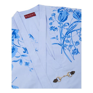 Light Blue Cotton Poplin Kimono Shirt with Gucci Flower Print.