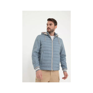 Elevate your outerwear collection with Herno’s sumptuous blend of silk and cashmere in this luxurious down jacket. Meticulously crafted in Italy, this piece merges sophistication with functionality, featuring a sleek hood with drawstring, a secure zipper closure, and convenient side pockets for a blend of comfort and style. Adorned in a rich blue hue, this Herno creation is an essential statement for the modern man who values elegance and quality.