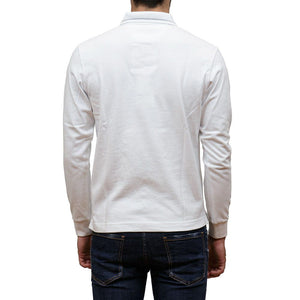 La Martina white long-sleeved polo shirt with silver logo embroidered on the chest