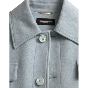 Dolce & Gabbana Light Blue Wool Button Trench Coat Jacket