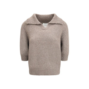 Lisa Yang’s Lailai Sweater is a sleek and minimal polo style featuring a V-neck collar, short sleeves and ribbed hem. An essential garment with a clean design, perfect for casual elegance.