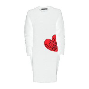 Love Moschino Chic Heart Pattern Knit Dress in White LO-10228-IT44|L