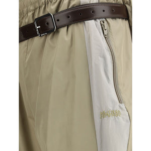 Magliano’s nylon Pants with Built-in Waistband are a blend of style and function. The oversize design offers a comfortable, relaxed fit, while the elastic waistband ensures comfort and practicality. The two zippered welt side pockets add a modern and secure touch, perfect for storing small items. The built-in adjustable leather belt allows you to customize the fit, completing the look with a stylish detail.