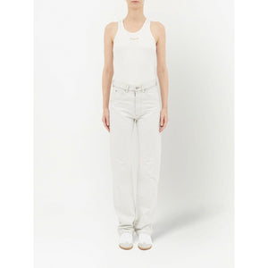 high-waisted straight-leg jeans from Maison Margiela featuring white, cotton, denim, high-waisted, straight leg, belt loops, front button and zip fastening, classic five pockets and straight leg. Skinny denim cotton jeans Size and Fit - This piece fits true to size. We recommend you get your regular size. Model is 1,75m / 5ft 8in wearing size 27 (WAIST CM)