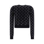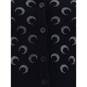 Cardigan by Marine Serre, ribbed crew neck, button front closure, ribbed hem, ribbed cuffs, iconic all-over contrasting brand logo, slim fit.