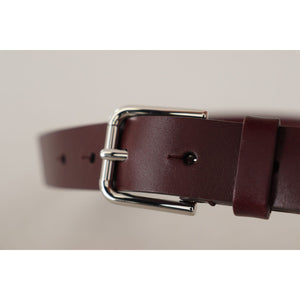 • Dolce & Gabbana Maroon Calf Leather Silver Tone Metal Buckle Belt