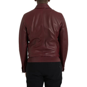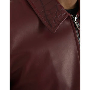 Dolce & Gabbana Maroon Exotic Leather Zip Biker Coat Jacket