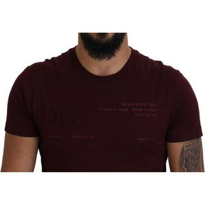Dolce & Gabbana Maroon Printed Short Sleeves Men T-shirt