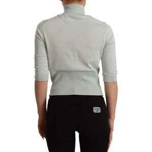 Dolce & Gabbana Mint Green 3/4 Sleeves Turtle Neck Silk Top