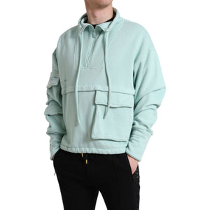 Dolce & Gabbana Mint Green Cotton Pockets Pullover Sweater