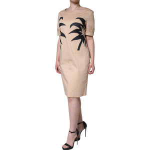Moschino Beige Cotton Short Sleeve Knee Length Dress